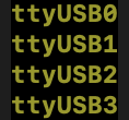 After I connected the Gearmo 4 port USB to Serial Adapter to one of the USB ports on the Pi I verified that it was recognized by the OS and that the devices were ready.