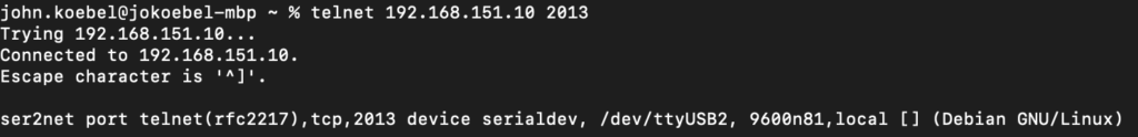 In my initial testing using telnet I was seeing some double carriage returns and other keystroke issues. I went back to the documentation and added telnet(rfc2217) to the accepter definition. This seemed to resolve the issues I was seeing earlier. The end result is I can telnet into any of the serial console connections that are setup as long as I have network access to the Pi. Pretty cool.